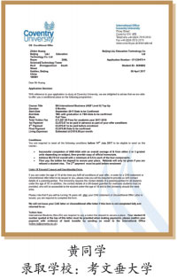 2014级学生叶同学现就读于英国考文垂大学