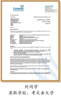 2014级学生刘同学现就读于英国考文垂大学
